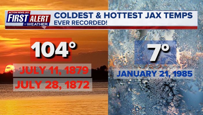 Jacksonville temp. records go back more than 150 years all the way back to 1871. In a perfect world, the thermometer would never be moved, but that’s rarely the case for any weather reporting station in the U.S. The thermometer has been located at JIA since 1971.